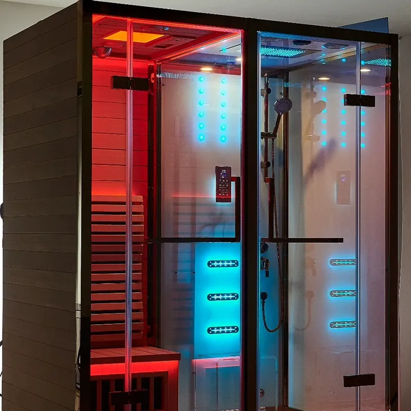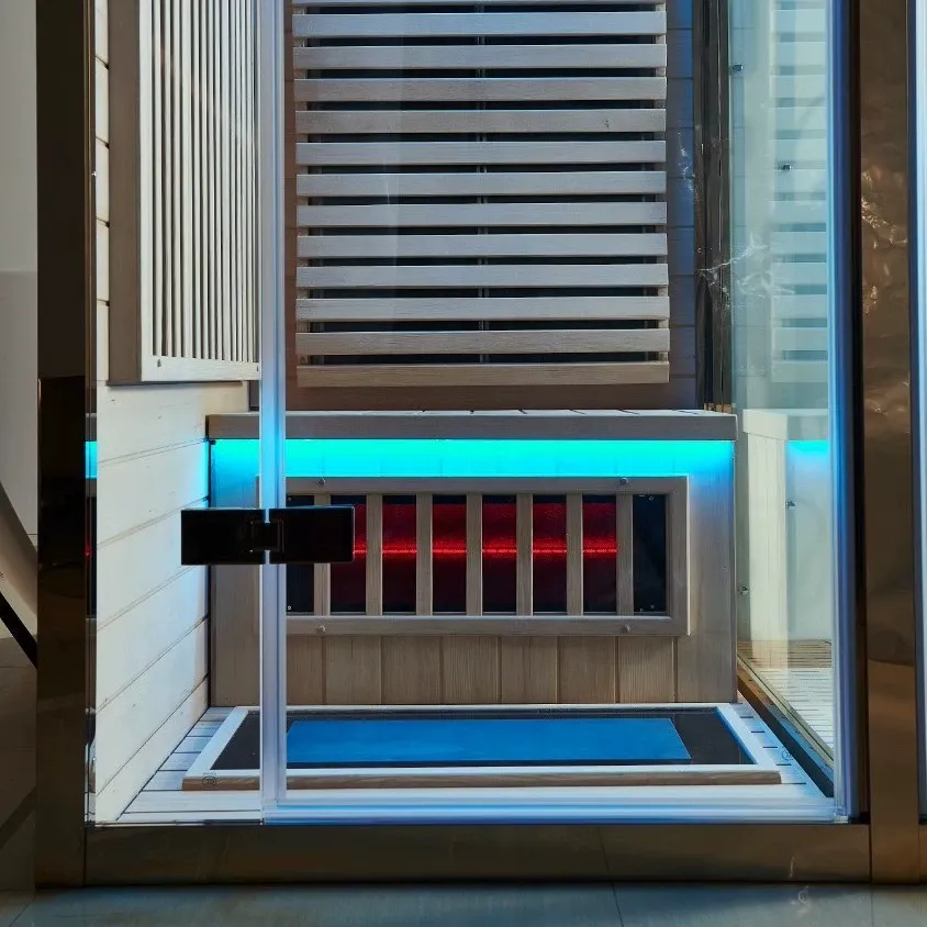 Realizuje oddzielenie obszaru sauny/fal świetlnych od obszaru mokrego prysznica parowego, z opcjonalnymi dwoma trybami ogrzewania: