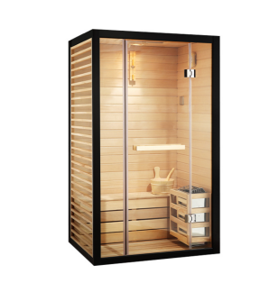 W połączeniu z metalową ramą znajdują się dwa przezroczyste panele szklane (boki lub kombinacja przód/bok, w zależności od projektu). Konstrukcja z podwójnym szkłem zalewa wnętrze światłem naturalnym lub pokojowym, eliminując uczucie „zamkniętości” powszechne w małych saunach. Pozwala także pozostać w kontakcie z otoczeniem (np. mieć oko na dzieci w pobliżu), jednocześnie ciesząc się prywatną sesją, równoważąc prywatność i otwartość.